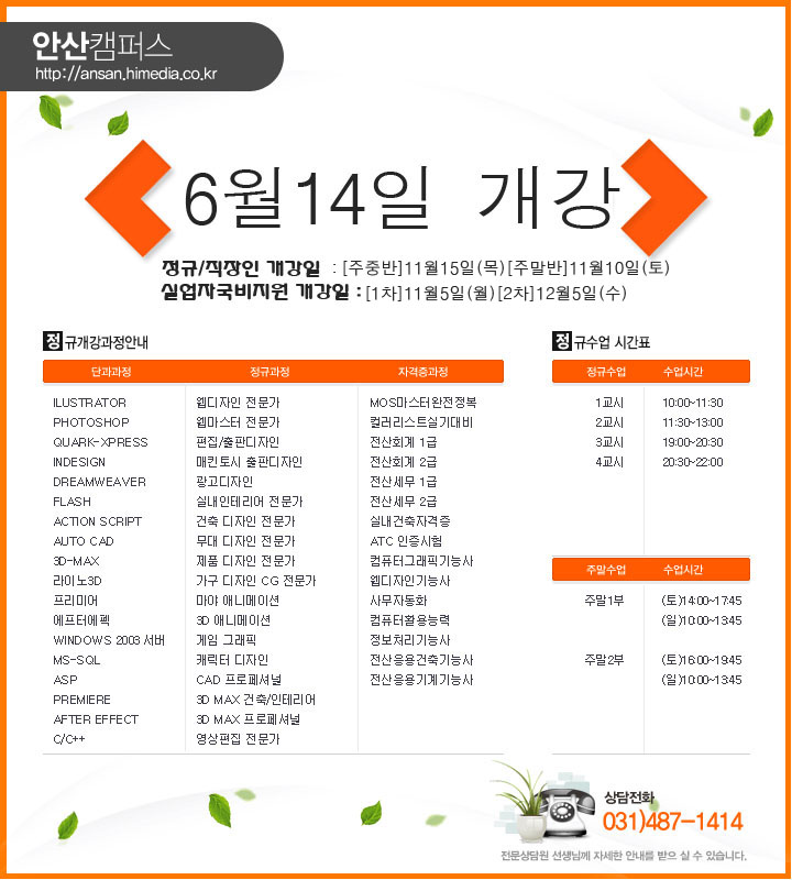 [정규과정]안산캠퍼스2012년11월정규개강안내